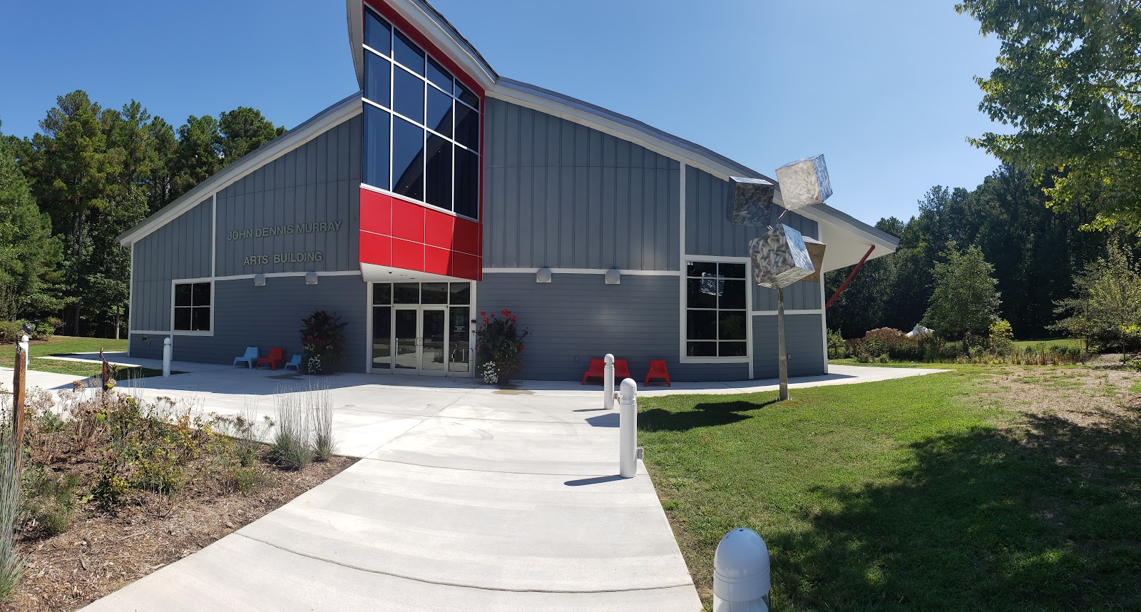 When you first pull into the parking lot you are immediately captivated by the sculptures that adorn the lawn. From abstract works to classical figures, there is truly something for everyone's taste. The sculptures tower over the lush lawn, inviting visitors to gaze up at them in wonder.