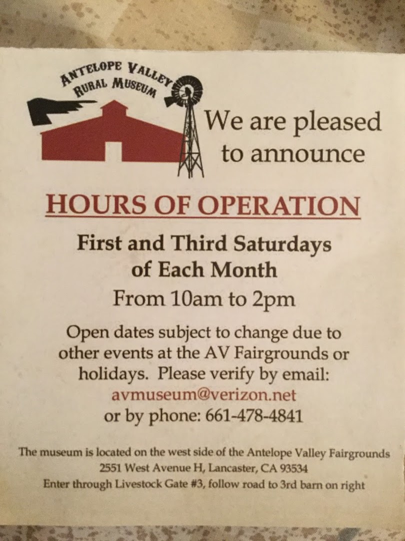 The Antelope Valley Rural Museum is a living tribute to the rural lifestyle of the Antelope Valley in Lancaster, California. Located at 2551-2713 W Avenue H, Lancaster 93536, this unique museum and its collection of artifacts from the late 1800s to the early 21st century reflect the rich and diverse history of this area.