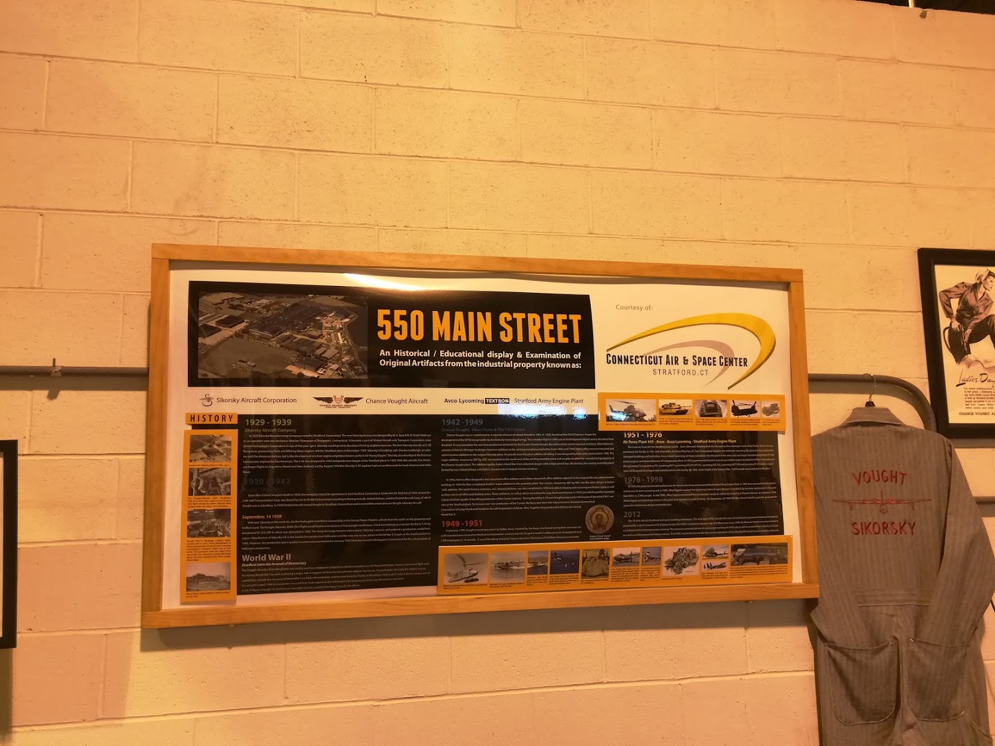 The Connecticut Air & Space Center is a non-profit Air Museum that displays vintage aircraft, memorabilia, and artifacts that pertain to Connecticut, both inside and out. The museum's motto is to: Honor, Preserve, Educate. Honoring the founders, workers, and companies from Connecticut. Preserving the vehicles and artif