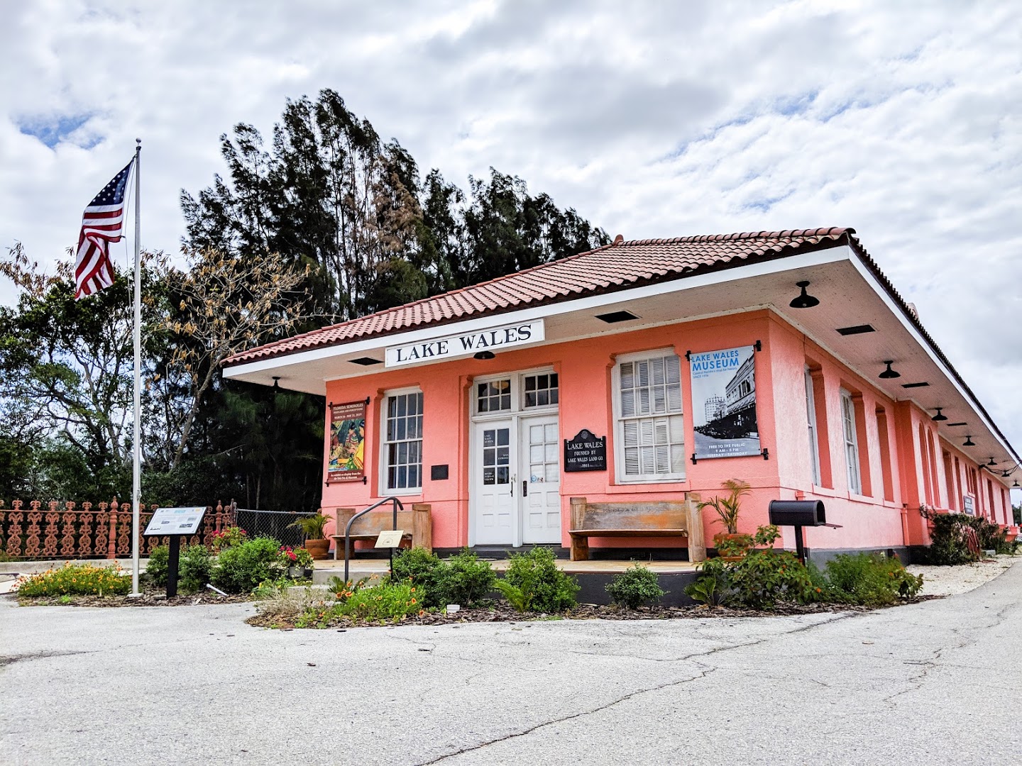 Constructed of brick and covered with pink stucco, the Depot at 325 South Scenic Highway was built as a passenger station by the Atlantic Coast Line Railroad in 1928 at an approximate cost of $51,000.