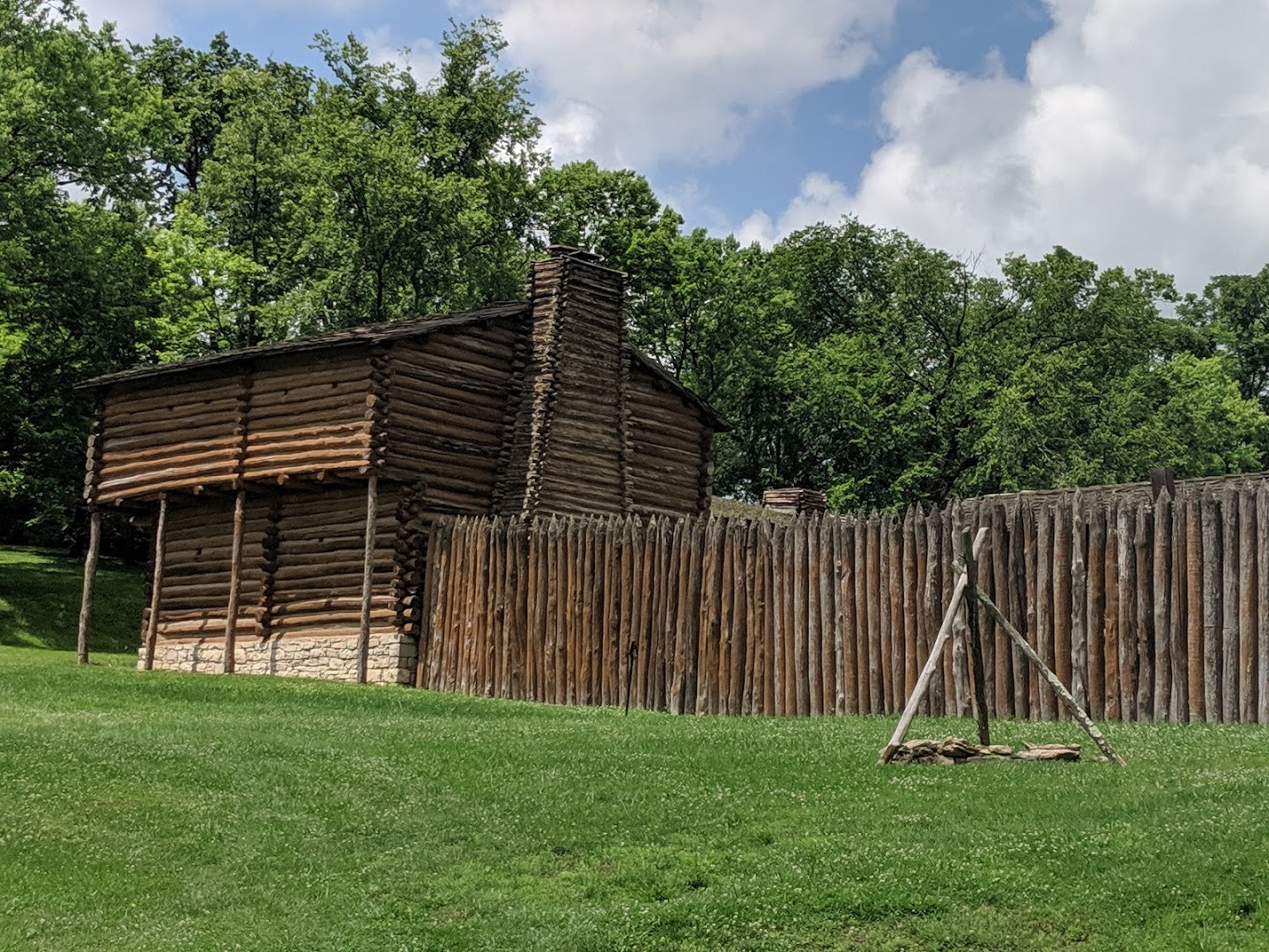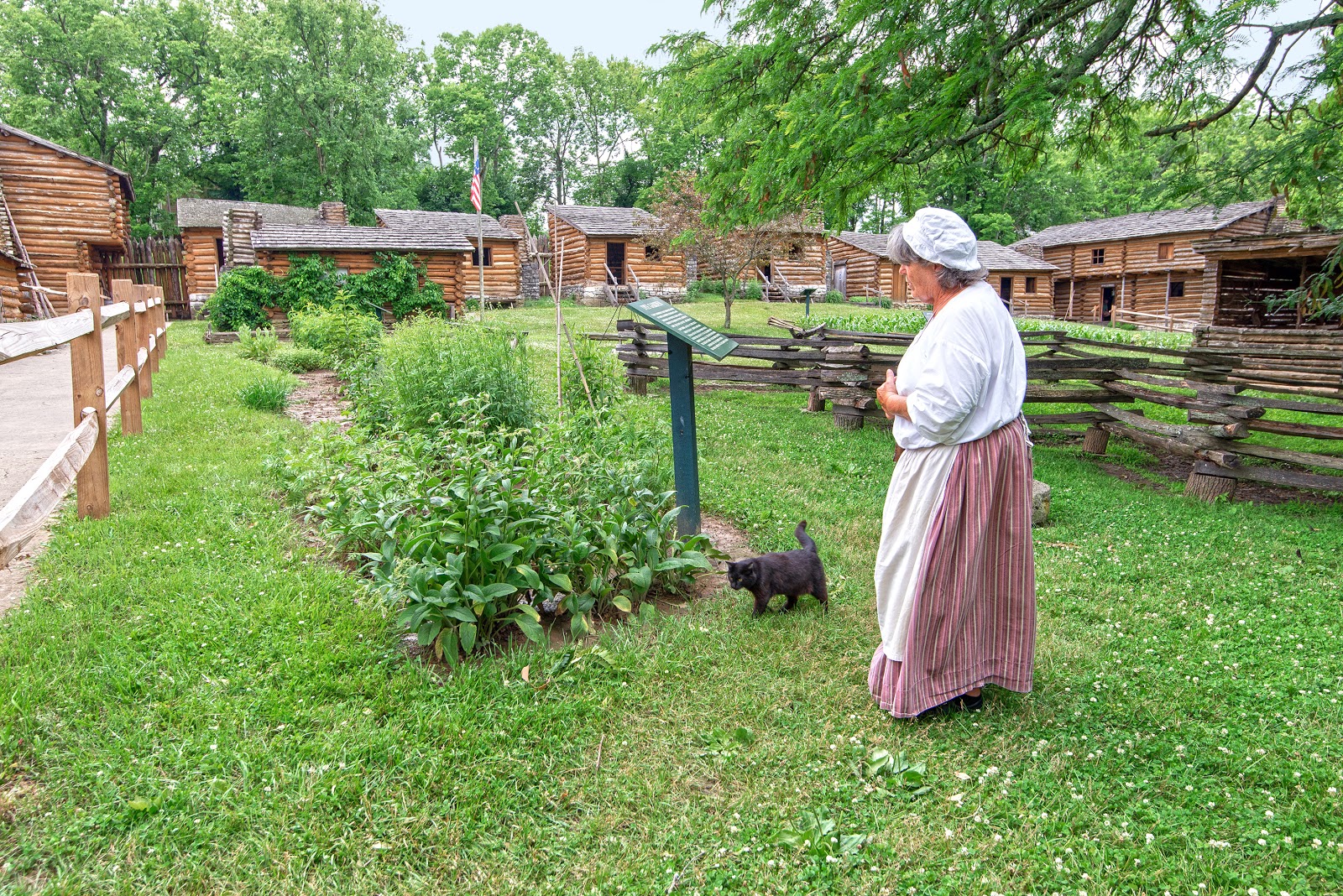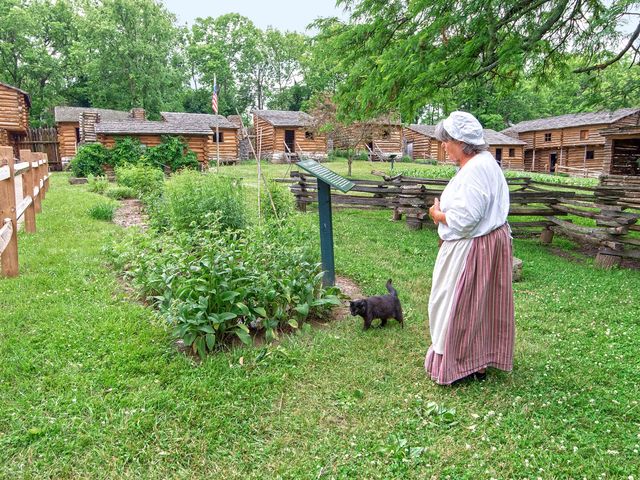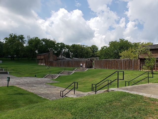 A full-scale replica of the fort built by James Harrod in 1774 is the centerpiece of Old Fort Harrod State Park in Harrodsburg, KY. Cabins and blockhouses are furnished with handmade utensils, furniture, crude tools and implements used by the pioneers. The park complex also features the historic Mansion Museum, George Rogers Clark Federal Monument, Lincoln Marriage Temple, and oldest cemetery west of the Alleghenies.