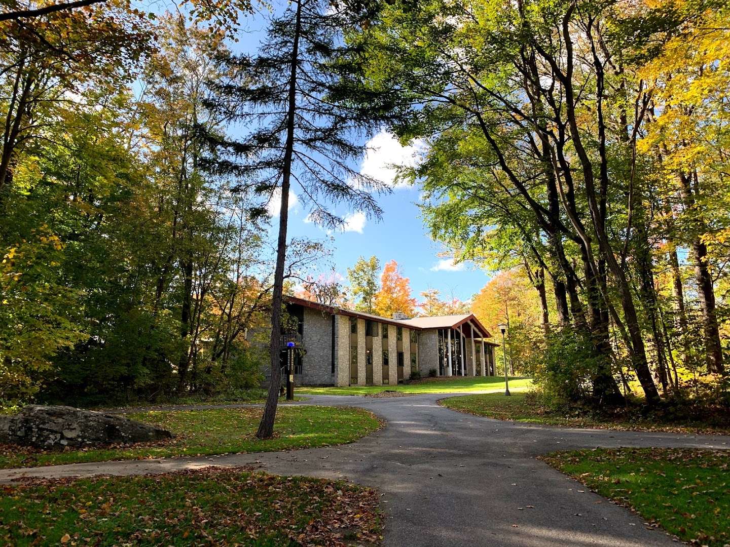 Behold; the main campus, newlywrought in brick and mortar, encircled with an abundance of trees and foliage. Here standeth the hallowed halls of education and scholarship, where knowledge is imparted and new ideas shared. It is a testament to the power of knowledge that this college has grown to become such a prominent figure in American academia.