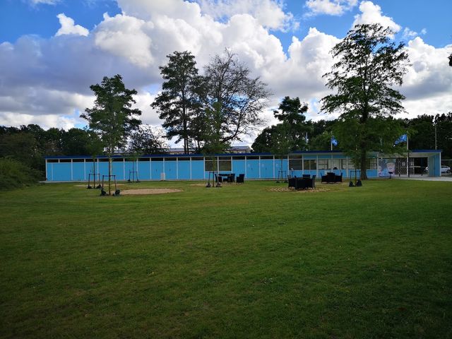 På legepladsen er der boldbane, rutsjebaner…